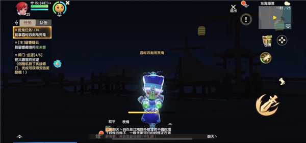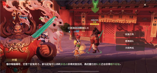 可以通過組隊任務-》抓鬼任務點擊“前往”,自動尋路找到鐘馗。