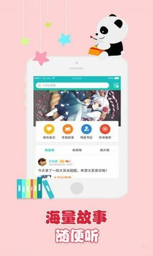 熊貓故事app使用說(shuō)明:1、進(jìn)入APP界面,然后瀏覽APP提供的故事