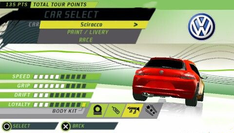 本作相比以往更改較大的一個系統(tǒng),完全取消了以往的通過比賽獲得金錢,然后購買部件進行改裝的模式,取而代之的是LOYALTY(熟練度)系統(tǒng),只要使用這輛車不停的參加比賽,就可以得到熟練度,當(dāng)熟練度槽升滿后,就可以得到一個部件,自動追加到車體上,提升車的性能。這種熟練度模式可以讓玩家對某一輛車的性能能有更好的認識,也增加了游戲的耐玩性,個人覺得是個比較不錯的嘗試。