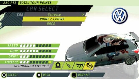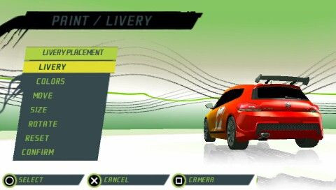 在車體選擇界面——PRINT/LIVERY選項,可以對車體的顏色和車體裝飾進行自定義。LIVERY(車身裝飾):可以定義車體的裝飾類型,值得一提的是,其中有個選項:CUSTOM LIVERY(定制裝飾),可以讀取記憶棒中圖片文件夾下的圖片,覆蓋到車體上作為花紋。
