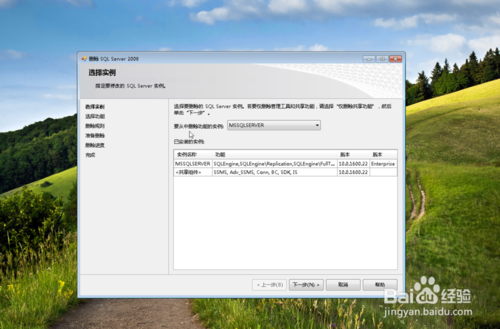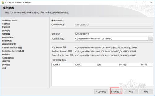 安裝配置頁面,選擇默認實例,點擊下一步