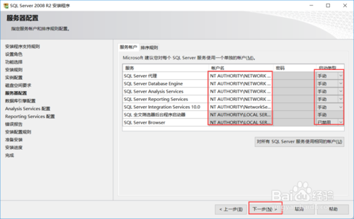 服務(wù)賬戶按圖中勾選,點擊下一步