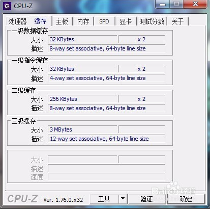 可以在 “緩存” 標(biāo)簽頁來查看 CPU 的緩存信息
