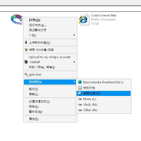 2.接下來,為了方便使用(此步可做可不做),ComicsViewer.exe -> 右鍵-> 發(fā)送到 -> 桌面快捷方式