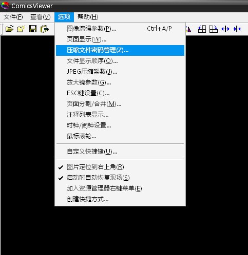 3.然后打開 ComicsViewer.exe -> 選項 -> 壓縮文件密碼管理