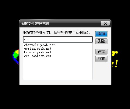 4.親親可以把你常用的壓縮密碼輸入,以后你直接使用RAR文件看漫的時侯你常常使用的那些密碼就不用輸入了,也不用專門去解壓縮浪費空間。