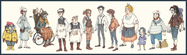 Trüberbrook有著許多性格迥異的村民,游客和路過之人,比如粗鄙但好心的旅館老板特露德和她的女兒雷尼。還有一位經(jīng)歷過兩次世界大戰(zhàn)的男爵,一位當(dāng)代陰謀論家等等。