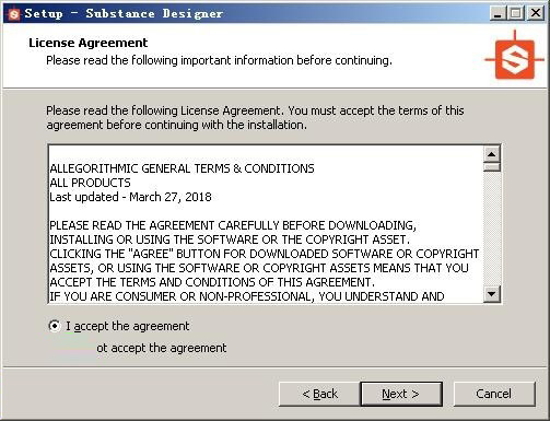 2、點(diǎn)擊next出現(xiàn)substance designer 2018的協(xié)議,選擇i accept