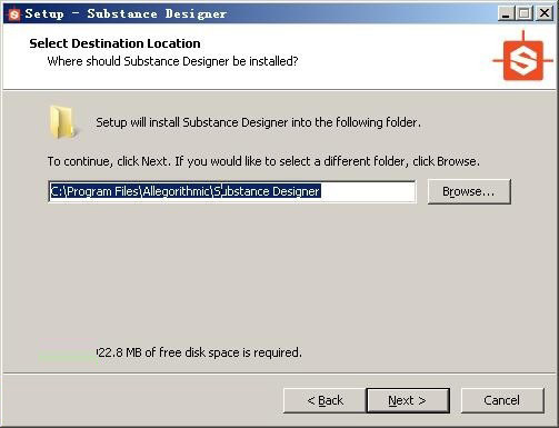 3、選擇軟件的安裝位置,默認(rèn)為“C:\Program Files\Allegorithmic\Substance Designer”