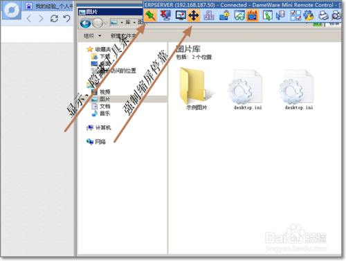 6.連接到被控制端后,軟件頂部會出現(xiàn)工具條,功能鍵是也圖形很形象的展現(xiàn),若不明白可以使用鼠標(biāo)移動(dòng)到圖標(biāo)上面,會顯示此圖標(biāo)的功能說明。