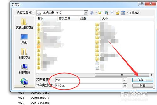 2、數(shù)據(jù)輸入完畢,將它保存在某個文件夾。單擊保存按鈕,設(shè)置文件名為444,格式為txt,保存在D盤。