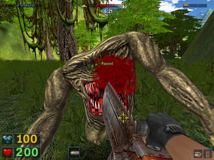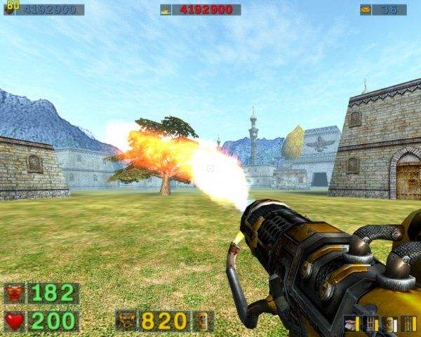 很難找到一個各方面都象克羅地亞開發(fā)公司Croteam制作的英雄薩姆1這么富有激情的游戲,這是一個節(jié)奏極快、包含了各種各樣的武器和怪物的第一人稱射擊游戲。它具有大量的幽默成分和獨特的風(fēng)格,同時還擁有一個非常強大的3D引擎——最值得注目的就是同時在屏幕上顯示大量3D角色的能力。實際上,玩家在Serious Sam中將要面對的眾多敵人或許是其最顯著的特點。當(dāng)然,這個游戲在其他方面也有上佳的表現(xiàn),例如優(yōu)秀的多人模式、出色的聲音效果、甚至還有較低的零售價格等等。毫無疑問Serious Sam是一部簡單樸素的作品——它在所有屬于任何動作游戲本質(zhì)的核心游戲性方面都進行了完美的演繹。 敵人將從各個方向向你發(fā)動進攻 看一看包裝盒——Sam手持一支巨大的轉(zhuǎn)管機槍正在對抗一群怪物——你就會游戲的內(nèi)容有大致的了解。為什么游戲設(shè)定在埃及的古老金字塔地區(qū)、Sam獨自一人面對外星的威脅、以及敵人可以毫無預(yù)兆地潛到附近有些令人不解,但是所有這些只是為了調(diào)整游戲中極端傷腦筋的動作成分,以及達到關(guān)卡設(shè)計的一致性。Serious Sam中的關(guān)卡將逐漸提供更大的挑戰(zhàn),但是其中大多數(shù)的基本風(fēng)格都非常相似。因此這個游戲可以讓玩家回憶起無數(shù)的經(jīng)典街機游戲——Asteroids、Centipede、Galaxian等等——勝利完成一個關(guān)卡獲得的獎勵將是通過更艱巨考驗的橋梁。Serious Sam確實和這些更古老的游戲很相似,甚至還會基于玩家的技能計算出游戲的分?jǐn)?shù)。這是一個相當(dāng)冒險的設(shè)計——從Value于1998年發(fā)行了革命性的Half-Life以來,大多數(shù)射擊游戲都聚焦于試圖證明自身的存在理由,所有的射擊戰(zhàn)斗都會提供某種理由。但是Serious Sam更加直接,這一點和80年代的街機經(jīng)典作品和90年代的經(jīng)典第一人稱射擊游戲Doom和Duke Nukem 3D類似。它的簡單設(shè)計完全是成功的,因為這個游戲看上去非常出色、控制系統(tǒng)的反應(yīng)非常靈敏、而怪物提供了真正的挑戰(zhàn)。 Serious Sam玩起來和最近任何射擊游戲都很類似,不過節(jié)奏更快。