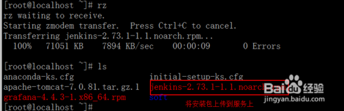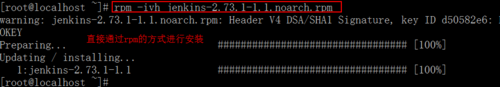 2.直接通過(guò)rpm -ivh jenkins-2.73.1-1.1.noarch.rpm 的方式進(jìn)行安裝,等rpm包安裝完成之后會(huì)直接將jenkins加入到系統(tǒng)服務(wù)中