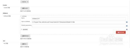 7.這里的Msbuild Version選擇了vs2017里的,jenkins插件庫(kù)中的msbuild版本太低,編譯經(jīng)常出錯(cuò),最簡(jiǎn)單的做法就是安裝VS,然后在“系統(tǒng)管理”->“全局工具配置”中配置VS工具中的msbuild路徑,如下圖所示: