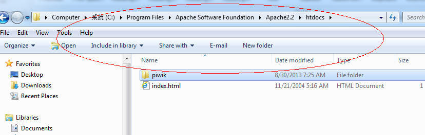 將下載的 piwik 安裝包上傳到服務(wù)器,具體什么位置不限,記住路徑即可。我將 piwik 上傳Apache部署的根目錄下,(如我實(shí)在本機(jī)測(cè)試,所以就將Piwik放在C:\Program Files\Apache Software Foundation\Apache2.2\htdocs的目錄下),