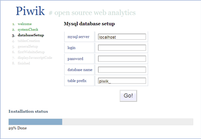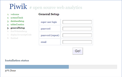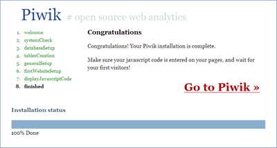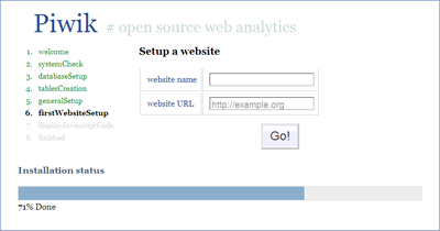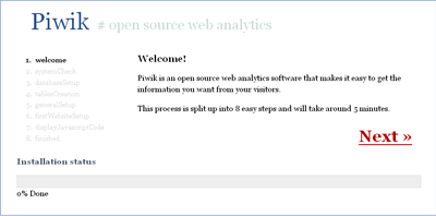 4.Piwik 是安裝在服務(wù)器端的統(tǒng)計(jì)工具,安裝過(guò)程很簡(jiǎn)單,但是需要服務(wù)器支持 PHP5.1 與 MySQL 。安裝時(shí)上傳 Piwik 到服務(wù)器端,而后打開(kāi)瀏覽器,Piwik 會(huì)自動(dòng)運(yùn)行安裝,整個(gè)過(guò)程不超過(guò) 5 分鐘。