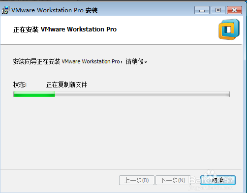 在彈出的“已準備好安裝VMware Workstation Pro”窗口中,點擊“安裝”按鈕開始安裝;