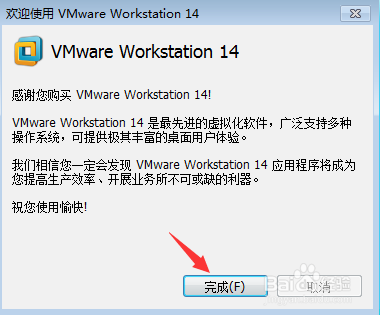 等待VMware安裝完畢后,在彈出的“安裝向?qū)б淹瓿伞贝翱谥?,點擊“完成”按鈕完成安裝;