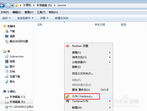 5.在文件夾source內(nèi)鼠標(biāo)右鍵“SVN Checkout”