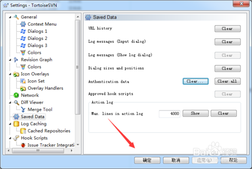 3.進(jìn)入“Saved Data”之后,找到“Authentication data”,如圖所示,點(diǎn)擊后面的“clear”按鈕。