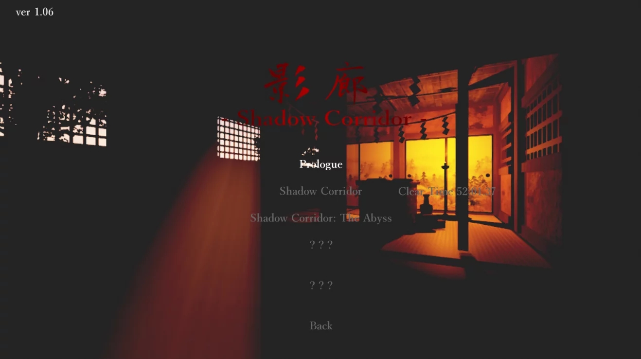 首先是選擇章節(jié),點(diǎn)擊進(jìn)入后彈出二級菜單,一共有五個章節(jié),第一個是序章,第二個是影廊,第三個是影廊:深淵,后面兩個零叔還沒打出來,暫時擱置,最下面是返回。