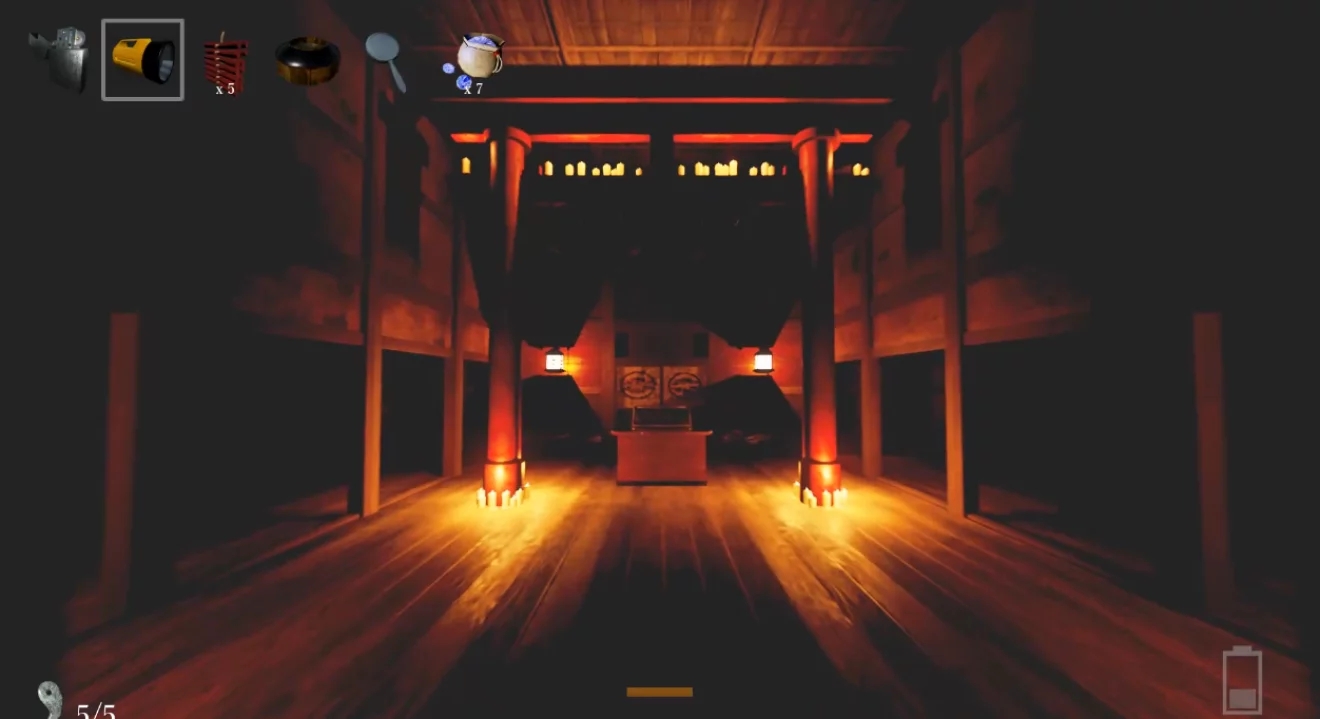 手電筒:本山大叔當(dāng)年家里唯一的家用電器。和打火機(jī)同為照明工具,不同于打火機(jī)的是,電筒的光亮亮度高,可以照到前方很遠(yuǎn)的方向,但是無法照亮周圍附近的死角,而且比起打火機(jī)來,其發(fā)出的光亮更容易被鬼影注意到。有電量限制,電量降低到一定程度時亮度和照明距離均會大幅度下降,但再次找到電筒時電量就會補(bǔ)滿,所以大可不必過于節(jié)約電量而舍不得用。