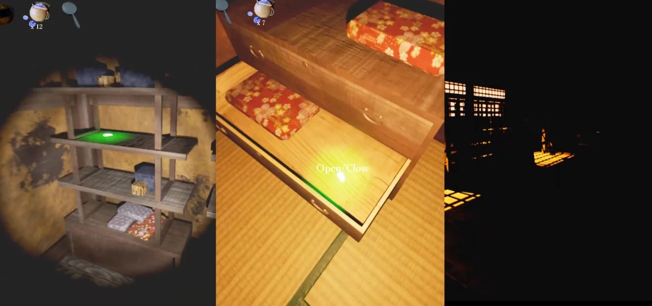 穿越傳統(tǒng)日本場地中的黑暗走廊,這些走廊隨著每次穿越而變化。