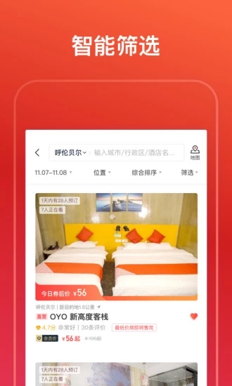 OYO酒店APP是一款為廣大旅客提供海量?jī)?yōu)質(zhì)酒店住宅的服務(wù)軟件,致力于為大家打造優(yōu)質(zhì)旅居生活空間,讓自己的旅途變得更加的燦爛多姿;支持用戶(hù)在線預(yù)訂,只要你選擇好目的地,系統(tǒng)也會(huì)為你自動(dòng)推薦幾款優(yōu)質(zhì)房,讓你隨時(shí)就可以來(lái)一趟說(shuō)走就走的旅行,有需要的朋友下載看看吧。
