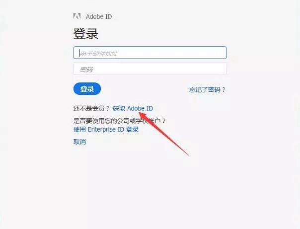 3、安裝完成后提示你登陸Adobe賬號,沒有的朋友可以點(diǎn)擊注冊,用QQ郵箱注冊就行,比較方便