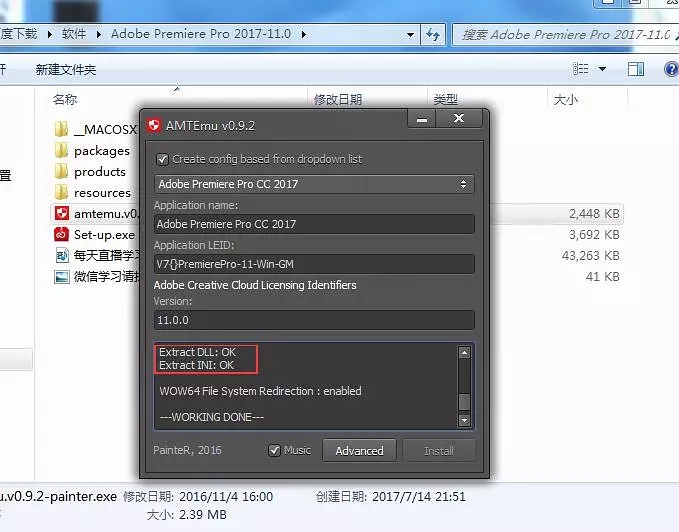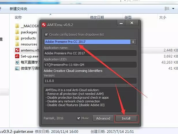 9、打開后選擇Premiere的版本,在點(diǎn)擊:Install