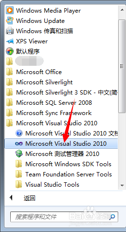 點擊左下角(開始)菜單欄,進(jìn)入所有程序,打開“Microsoft Visual Studio 2010”文件夾,鼠標(biāo)左鍵單擊“Microsoft Visual Studio 2010”打開軟件