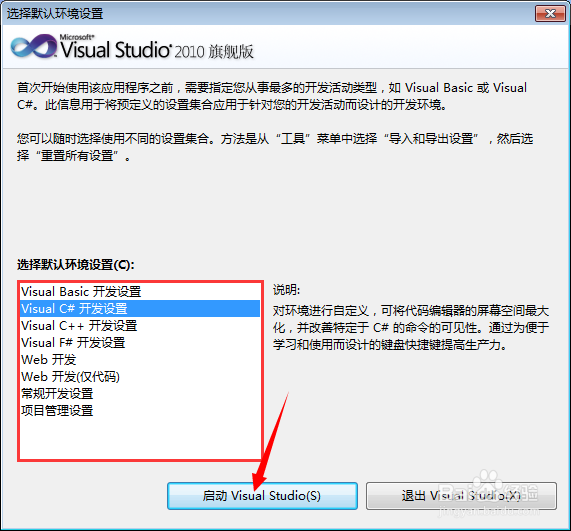 選擇默認(rèn)環(huán)境設(shè)置:看你是要干什么的啦,根據(jù)個人需求選擇,然后點擊“啟動 Visual Studio”