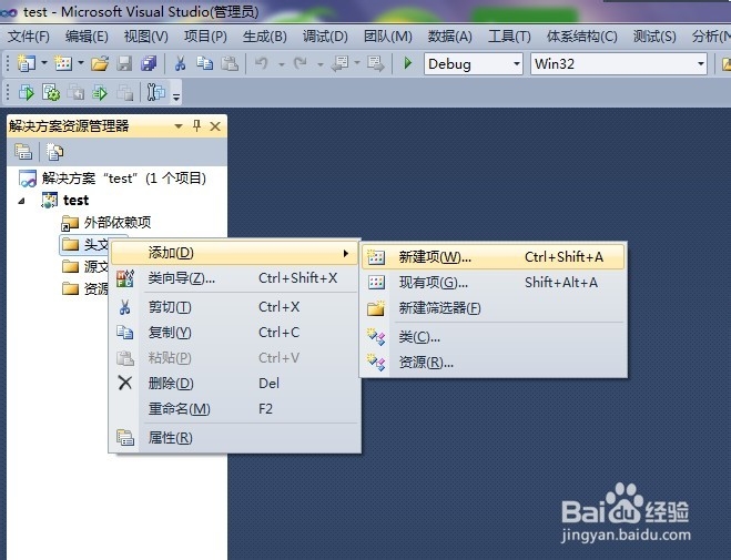 在頭文件或者源文件中點擊右鍵,添加--新建項