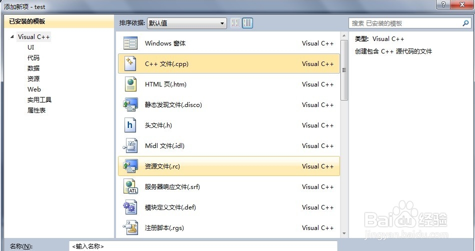 選擇c++文件,并輸入名稱,比如我命名為aaaa