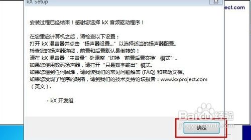 創(chuàng)新5.1聲卡win7驅動安裝前需要先禁用主板自帶的集成聲卡(如果有的話),先安裝KX3550M主驅動,創(chuàng)新5.1聲卡驅動安裝過程中如果系統(tǒng)提示重啟,請選擇否,安裝過程中系統(tǒng)會警告驅動程序未經過微軟認證(KX音頻驅動沒有微軟徽標驗證),不要管它,選擇繼續(xù)安裝即可。創(chuàng)新5.1聲卡驅動安裝后重啟計算機,打開KX混音器,點擊揚聲器設置以選擇適當?shù)膿P聲器配置,檢查揚聲器連接線,前置和后置默認是倒轉的。