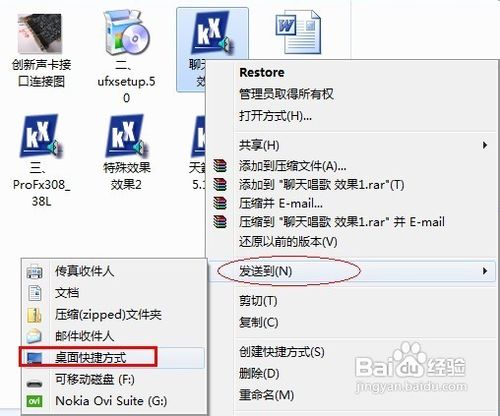 11、最后雙擊打開“聊天唱歌效果1.kx”,“聊天唱歌效果1.kx”在將快捷方式發(fā)送到桌面,“特殊效果效果2.kx”將快捷方式發(fā)送到桌面(如圖所示)