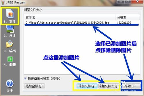 點擊“1.文件”,在右下邊點擊“添加文件”或者“添加文件夾”,在彈出的對話窗中選擇想要調(diào)整的圖片,如果添加錯了,也可以選中添加的文件,然后點擊“刪除”即可。