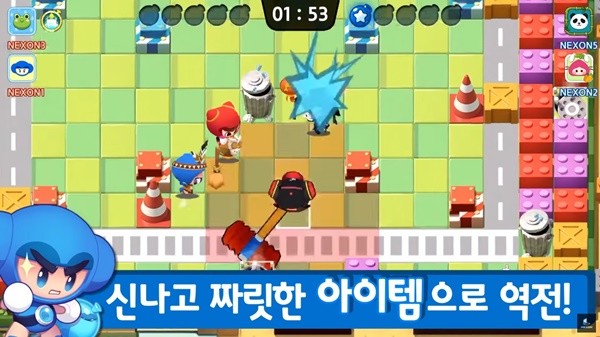 一般對戰(zhàn)為基本的 2 對 2 對戰(zhàn)模式,玩家只要率先踩破敵人的泡泡 5 次即可獲勝。