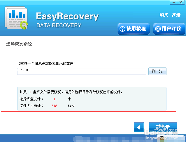 第四步:點擊“瀏覽”按鈕自定義選擇恢復后文件所需的存儲位置之后,點擊“下一步”按鈕,軟件就開始恢復選中的文件了,待恢復完成之后可前往查看結果。