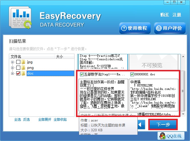 第四步:將其掃描結束后,在界面的左側可以出現圖片信息找到誤刪的文件 點擊旁邊將出現那你所需要的文件并將其勾選,單擊“下一步”按鈕