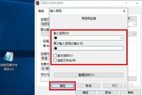 6、加密完成后,直接點(diǎn)擊確定文件就開(kāi)始?jí)嚎s了,壓縮完成后,如果我們需要加壓的時(shí)候,壓縮文件就會(huì)彈出窗口提示我們先輸入密碼,這樣就完成加密了,快來(lái)實(shí)踐一下吧。