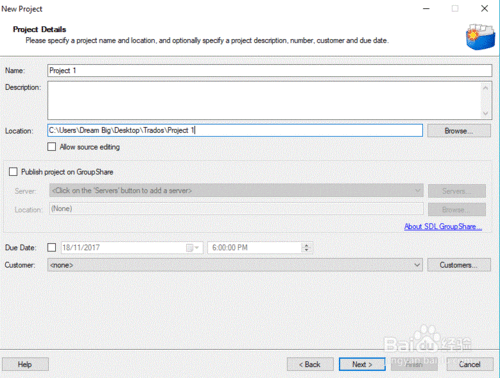 在彈出的“項(xiàng)目細(xì)節(jié)(Project Details)”中,輸入要保存項(xiàng)目的“位置(Location)”,并為項(xiàng)目“命名(Name)”,然后點(diǎn)擊“下一步(Next)”。