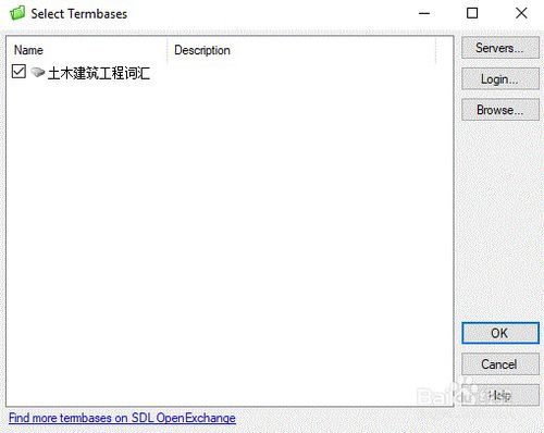 在彈出的“選擇術(shù)語(yǔ)庫(kù)”對(duì)話(huà)框中,點(diǎn)擊“瀏覽(Browse)”,選擇已創(chuàng)建的數(shù)據(jù)庫(kù),點(diǎn)擊“OK”。