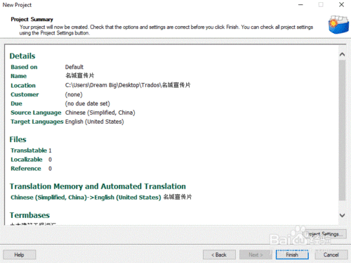 對(duì)彈出的源語(yǔ)言的設(shè)置對(duì)話(huà)框,依然保持默認(rèn),無(wú)需更改信息,點(diǎn)擊“完成(Finish)”。