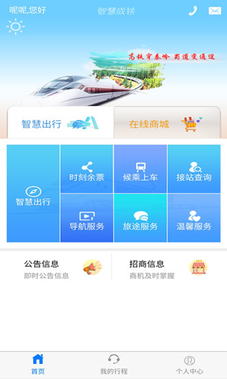 智慧成鐵APP是一款為旅客提供出行服務(wù)的應(yīng)用,包含了列車的實(shí)時查詢、候車與接站時刻的查詢、投訴與求助信息發(fā)布、訂餐服務(wù)和行李搬運(yùn)等一站式服務(wù),同時還有與旅行有關(guān)的商品出售,滿足出來旅行的人的全部需求。