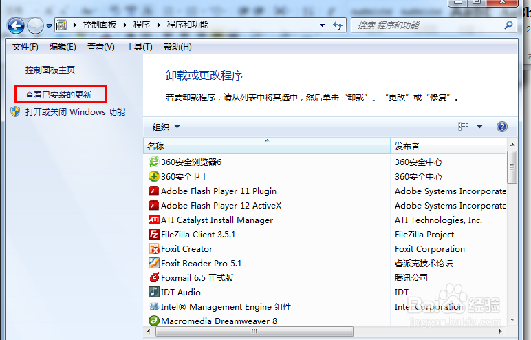 找到,windows internet explorer 程序,如果沒有點(diǎn)擊“查看已經(jīng)安裝的更新‘如下圖