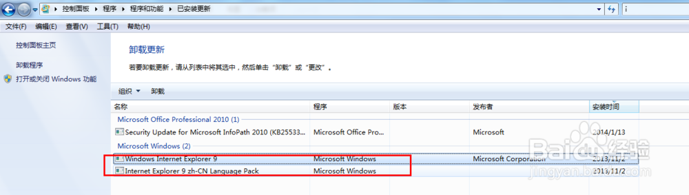 找到跟IE相關(guān)的安裝包, windows internet iexplorer程序如下圖