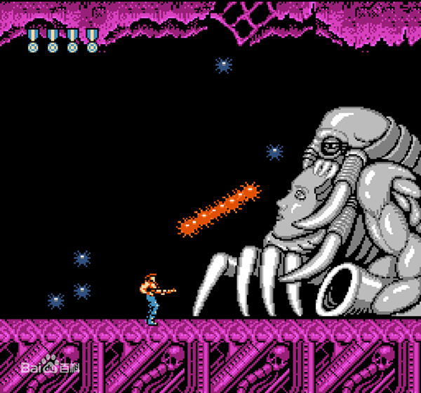 1、游戲的系統(tǒng)與前作基本相同,但有了一點(diǎn)細(xì)微改動(dòng):前作中由紅色獵鷹,表示的武器在本作中全部改以槍表示,部分武器形態(tài)也發(fā)生變化。比如前作的火焰槍F由旋轉(zhuǎn)小火球變?yōu)闀?huì)發(fā)散的大火球。霰彈槍S變成取得一個(gè)時(shí)一次發(fā)射三顆子彈,取得兩個(gè)時(shí)發(fā)射五顆。前作中的縱深版面被取消,取而代之的是可向八方向移動(dòng)、射擊的俯視畫(huà)面。在俯視畫(huà)面中可以得到令畫(huà)面內(nèi)敵人瞬間全滅的炸彈, [1] 發(fā)動(dòng)時(shí)機(jī)可由玩家決定,這個(gè)設(shè)定后來(lái)被SFC版沿用。游戲難度之于前作大幅度提高,被認(rèn)為是系列所有作品中最難的之一。2、日版的標(biāo)題為《超級(jí)魂斗羅》,去掉了街機(jī)版的副標(biāo)題“異形的反擊”(エイリアンの逆襲),而美版的標(biāo)題則為“Super C”。歐洲版標(biāo)題為“Probotector II - Return of the Evil Forces ”,主角與敵人依然是機(jī)器人。