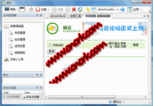 主要實(shí)現(xiàn)的功能包括:將小說內(nèi)容讀取進(jìn)入到單一的新頁面,無彈出廣告,無廣告圖片,并且借此實(shí)現(xiàn)更理想的讀入速度;針對(duì)不同網(wǎng)站的情況可以通過模擬瀏覽器訪問或直接讀取網(wǎng)頁內(nèi)容的方式加載頁面,定向讀取網(wǎng)頁中的文字區(qū)域。集成站點(diǎn)管理,可方便管理所有文學(xué)站點(diǎn)的設(shè)置,通過書目管理來管理不同文學(xué)小說。 可以選擇不同皮膚樣式來提供不同的用戶體驗(yàn)。操作流程,簡(jiǎn)單快捷從閱讀網(wǎng)站頁面進(jìn)入:打開想讀的書籍頁面(請(qǐng)確保是在章節(jié)的閱讀頁面,而不是目錄或者書籍信息頁), 如果當(dāng)前是一個(gè)新的文學(xué)網(wǎng)站會(huì)提示讓您創(chuàng)建一個(gè)新的站點(diǎn)規(guī)則,完成后將自動(dòng)讀取當(dāng)前小說目錄,加載當(dāng)前內(nèi)容。以后你可以通過書目管理來檢查站點(diǎn)的更新情況,節(jié)省您的時(shí)間,自動(dòng)記錄您最后一次的閱讀位置。