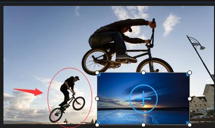 2、導(dǎo)入圖片以后在播放窗口,調(diào)節(jié)圖片大小,以恰好遮擋住水印為宜。以下面素材為例,遮擋住小的人物。如圖: